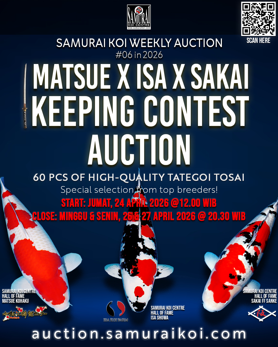 2. The bidding period, the bidding time, successful bid time and time concerning management is based on Indonesia time in Samurai Koi Auction server.